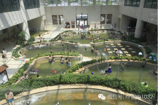 養(yǎng)生溫泉中心,總建筑面積2多萬平方米,采用中式四合院園林建筑風(fēng)格。1樓為綜合服務(wù)大廳,設(shè)有男女更衣柜共2680個。并設(shè)有室內(nèi)恒溫游泳池和室內(nèi)水療區(qū)。2樓為香薰影視廳、溫泉休息大廳、桌球室、兒童淘氣堡、香薰影視廳、中醫(yī)理療、足療、貴賓按摩區(qū)、書吧、網(wǎng)吧。3樓為巴厘島SPA區(qū)。
