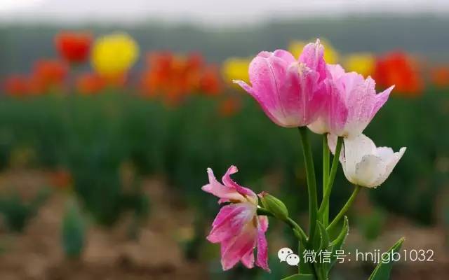 在嵖岈山天磨湖景區(qū)外,有著近300畝約有100多萬株的荷蘭郁金香種植基地,顏色多達36種之多。