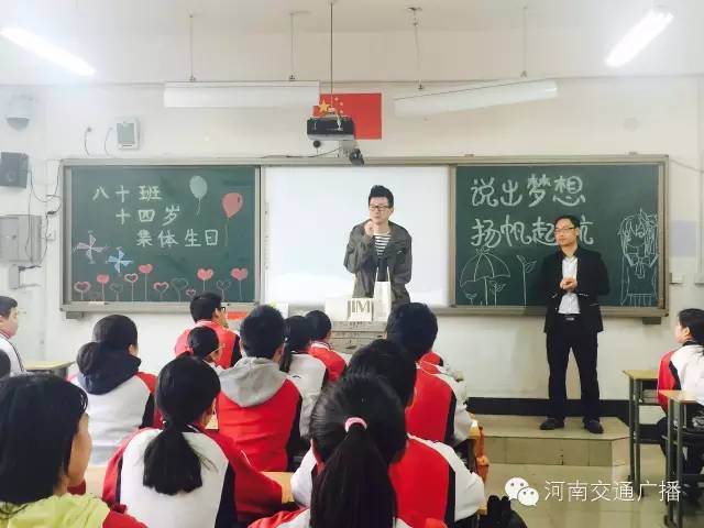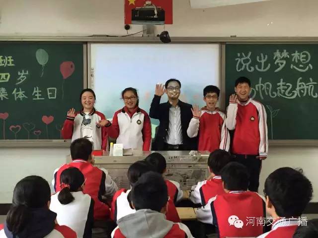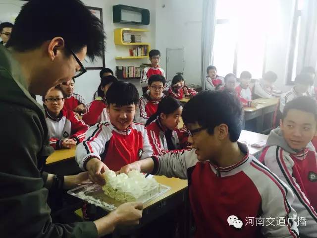 班主任李少鋒老師很激動(dòng),他說,沒想到一條小小的微信,竟然真的請到了河南交通廣播主持人來給同學(xué)們送蛋糕,他說,這樣的班會開得很有意義,讓孩子們學(xué)會分享,是與同學(xué)們心貼心的交流。