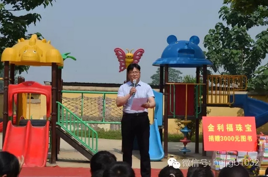 縣里領(lǐng)導(dǎo)和《知道不知道》主持人鵬哥紛紛上臺(tái)致辭,金利福珠寶和中鐵七局集團(tuán)電務(wù)工程有限公司也進(jìn)行了圖書(shū)的捐贈(zèng)!