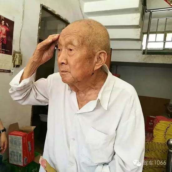 老兵聽不到我們?cè)谡f(shuō)什么,今年98了。