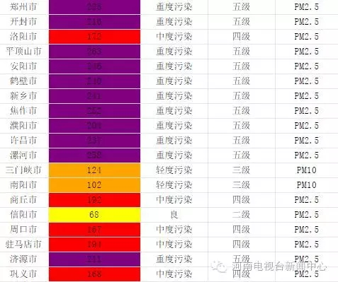 從即時起至16日,鶴壁、濮陽、鄭州、開封等15個省轄市和鞏義、蘭考、汝州、鄧州、永城、固始、鹿邑、新蔡等8個省直管縣(市)啟動不低于黃色預警的重污染天氣應急響應。
