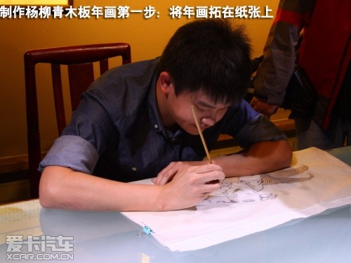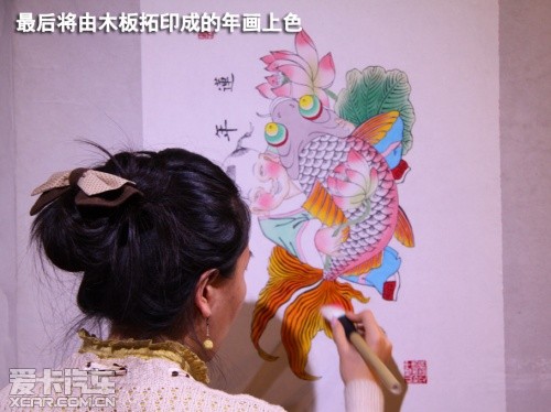 楊柳青木板年畫約產(chǎn)生于明代崇禎年間。清雍、乾至光緒初期為鼎盛期。制作方法為“半印半畫”,即先用木版雕出畫面線紋,然后用墨印在紙上,套過(guò)兩三次單色版后,再以彩筆填繪,勾、刻、刷、畫、裱等純手工制作。