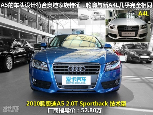 5月23日,奧迪A5/S5全系共10款車型正式在全國上市,其中包括全新的A5/S5 Cabriolet敞篷轎跑車、A5/S5 Sportback五門轎跑車和全新的A5/S5 Coupe雙門轎跑車,以及充滿動(dòng)感個(gè)性的A5 Coupe 2.0T風(fēng)尚版。今天我們在4S店拍攝到的這輛藍(lán)色的A5為售價(jià)52.8萬的Sportback 2.0T車型。