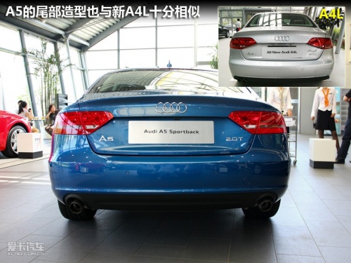 如果不仔細(xì)看,你將很難把它和新A4L區(qū)分開,它的車頭部造型幾乎與A4L完全相同,車身尾部也僅僅是尾燈與A4L略微不同。如果不是尾部的A5字樣標(biāo)識,很多人都可能會(huì)“看花眼”。事實(shí)上,奧迪A5 Sportback的車身尺寸也與歐版奧迪A4較為接近。