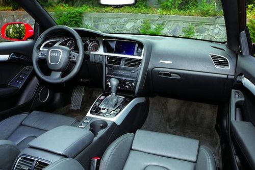奧迪A5 Cabriolet 2.0T雖然身為一款敞篷跑車,但其內(nèi)飾設(shè)計(jì)卻與奧迪轎車的整體風(fēng)格完全一致。在這個(gè)座艙里,我們看不到大面積的金屬裝飾,也找不到刺激駕駛者腎上腺素分泌的夸張?jiān)O(shè)計(jì)。黑色依然是座艙的核心色調(diào),各種豪華配置告訴我們——這并不是一款過(guò)分追求動(dòng)態(tài)性能的車,舒適才是它的首要任務(wù)。駕駛臺(tái)上,MMI多媒體互動(dòng)系統(tǒng)依舊是所有座艙系統(tǒng)的核心。與上一代系統(tǒng)相比,新一代MMI多媒體交互系統(tǒng)的改進(jìn)包括3個(gè)方面:第1,硬盤驅(qū)動(dòng)的導(dǎo)航系統(tǒng)功能更加強(qiáng)大;第2,屏幕顯示和圖像處理能力均有提升;第3,操作按鍵的設(shè)計(jì)更加人性化,便于用戶靈活自如地使用各項(xiàng)功能。