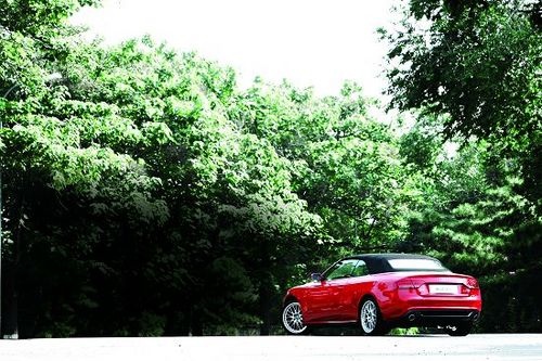 雖然對(duì)奧迪A5 Cabriolet 2.0T已經(jīng)非常熟悉,但在走到它身邊的時(shí)候還是興奮不已。毋庸置疑,火紅色的奧迪A5 Cabriolet 2.0T實(shí)在是太美了,低矮的車身極具運(yùn)動(dòng)韻味,黑色的折疊軟頂在紅色車身的映襯下非常搶眼。最令人欣喜的是,奧迪A5 Cabriolet 2.0T的前風(fēng)擋外框采用了亮銀色涂裝,并延伸至駕駛艙周身,構(gòu)成了一個(gè)完整的裝飾圈,起到了畫(huà)龍點(diǎn)睛的作用。