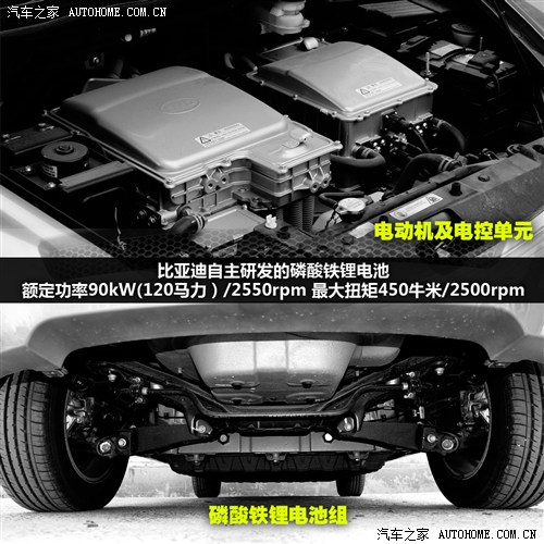 這輛比亞迪e6純電動(dòng)車(chē)有一套由比亞迪自主研發(fā)的磷酸鐵鋰電池,額定功率90kW(120馬力)/2550rpm,最大扭矩450牛米/2500rpm。巨大的電池組就被設(shè)計(jì)在車(chē)身底部中段的位置,電池組外面帶有鋼制保護(hù)殼體,避免電池組直接受到撞擊和剮蹭。由于巨大的電池組,比亞迪e6車(chē)身質(zhì)量達(dá)到了2.3噸,論重量和大眾途銳和寶馬X6達(dá)到了一個(gè)數(shù)量級(jí)。
