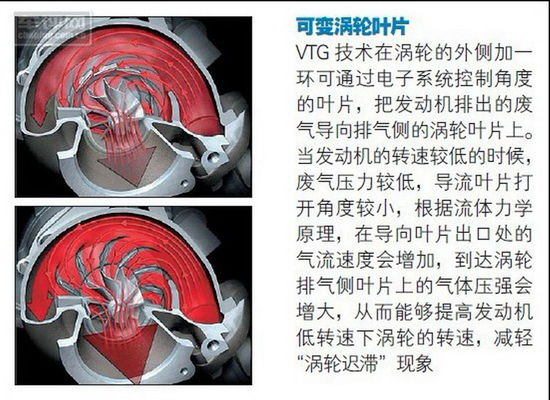 由于受到柴油發(fā)動機(jī)轉(zhuǎn)速的限制,想在加速過程中享受持續(xù)的加速感似乎很難,但油門踏板的響應(yīng)性以及低轉(zhuǎn)速下所提供的扭力的確值得稱道。在渦輪增壓器中使用了可變渦輪葉片(VTG)技術(shù),有效地減輕了渦輪遲滯現(xiàn)象。尤其是在擁堵的城市間停停走走,顯得底氣十足。