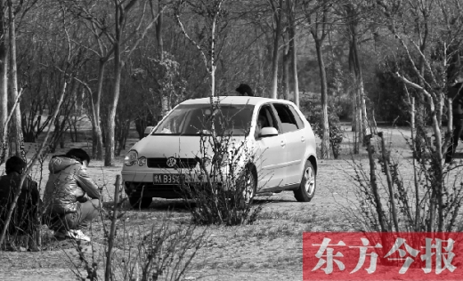 記者還發(fā)現(xiàn),有的游人將汽車開進草坪后,在草坪上鋪張報紙,席地而坐,有的三五成群聚在一起,打起撲克。
