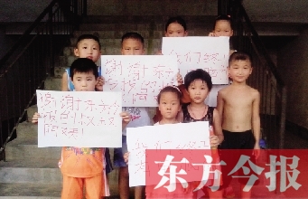 昨晚,已經(jīng)返回當(dāng)?shù)氐内w會勇傳來圖片,畫面上,幾個孩子舉起寫著“感謝東方今報的叔叔阿姨”的紙片。字寫得歪歪扭扭,但,看到的人都覺得很溫暖。DF