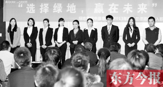 綠地集團(tuán)中原事業(yè)部行政人事部經(jīng)理許詠琪說,招募管培生是集團(tuán)人才發(fā)展戰(zhàn)略的重要組成部分,因此對人才選拔要求的嚴(yán)格程度,超乎尋常。