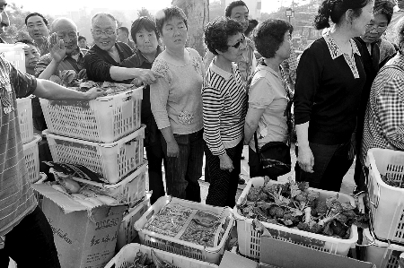 市民排長(zhǎng)隊(duì),來(lái)買便宜菜
