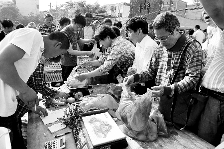 在現(xiàn)場(chǎng),管城區(qū)商務(wù)局的工作人員忙個(gè)不停。該局工會(huì)主席李國(guó)占說(shuō),不到6點(diǎn)半,就有很多市民提著籃子來(lái)買菜,7點(diǎn)鐘開始賣菜時(shí),已經(jīng)有200多人在排隊(duì)。