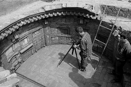 考古人員正在拍攝唐古墓。 李青春 攝