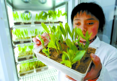 3月27日,??h種子站工作人員在查看光照培養(yǎng)箱里培養(yǎng)的種苗。近年來,??h實施“科技興糧”戰(zhàn)略,糧食生產連年獲得豐收。目前,??h100多萬畝小麥長勢良好。 新華社發(fā)