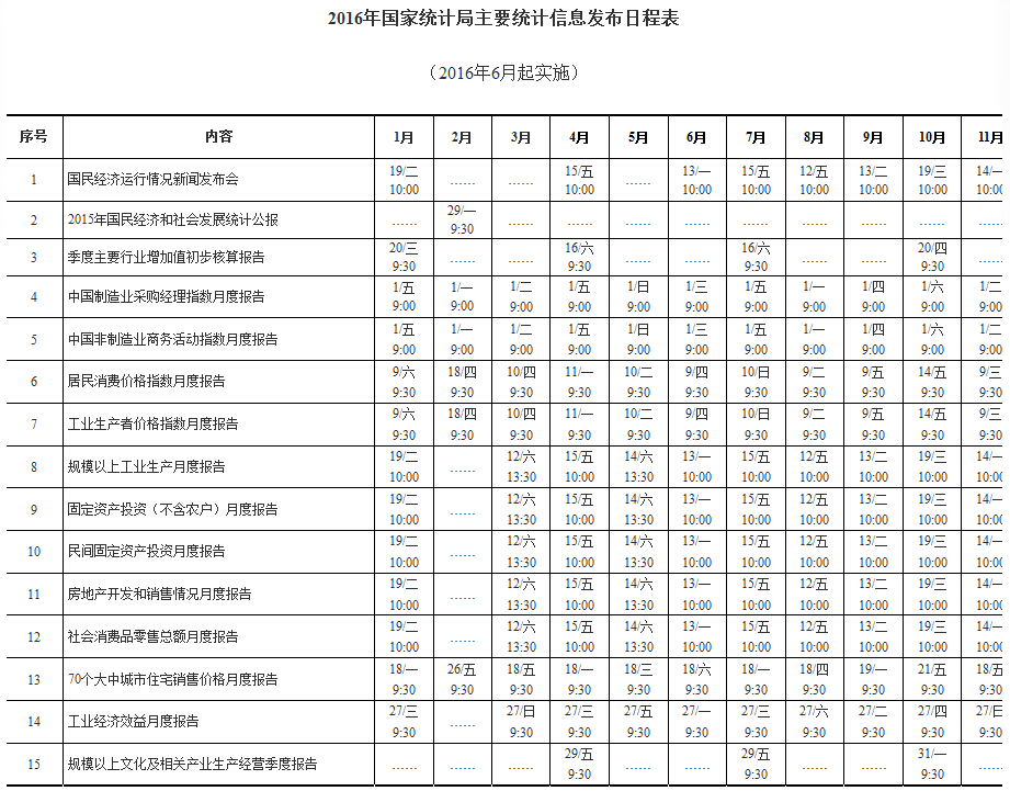今年各月度新聞發(fā)布會(huì)舉辦時(shí)間分別為6月13日、8月12日、9月13日、11月14日和12月13日,CPI、PPI、PMI發(fā)布及季度新聞發(fā)布會(huì)時(shí)間不變。