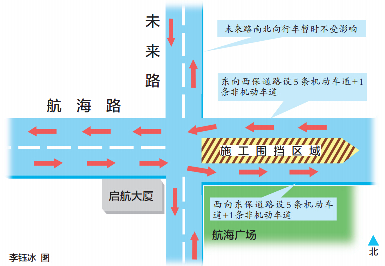 昨日,記者從交警四大隊(duì)了解到,隨著航海路一線地鐵5號線施工的推進(jìn),航海路未來路口即將開始搭建新的圍擋進(jìn)行站體施工,25、26日進(jìn)行模擬實(shí)驗(yàn),27日正式圍擋。屆時(shí)航海路東西方向車輛將會(huì)改行到新修的保通路面,由雙向8車道減為雙向5車道。未來路南北方向車輛暫不受影響。