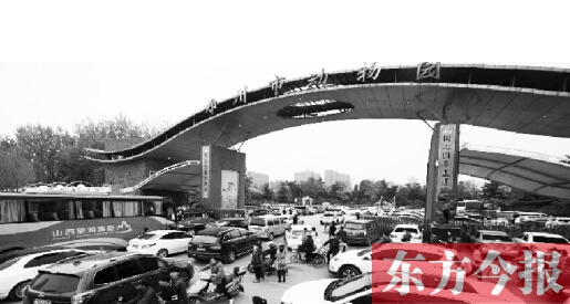 到了西門(mén),記者搞清楚堵車(chē)的原因,竟是動(dòng)物園停車(chē)位緊張。一輛接一輛的車(chē)在門(mén)口排隊(duì)等著交費(fèi)進(jìn)入,車(chē)隊(duì)一直排到了花園路上。