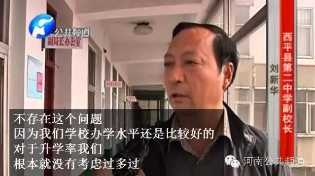 為了升學(xué)率、為了利益,不惜出賣學(xué)生嗎?為了證實(shí)家長的說法,記者又回到了西平縣二中,可是卻被學(xué)校保安拒之門外,隨后記者撥打了西平二中副校長劉新華的電話。