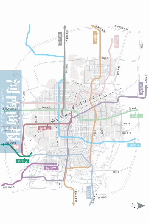 3號線走向為西北、東南,聯(lián)系惠濟(jì)區(qū)、城北片區(qū)、老城區(qū)、鄭東新區(qū)和經(jīng)開區(qū)。