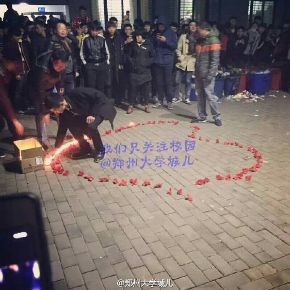有時(shí)候表白失敗的因素不一定是被拒絕了,還有可能是學(xué)校領(lǐng)導(dǎo)的滅火器!在鄭州財(cái)經(jīng)學(xué)院,女主還沒來,一場還未開始的表白就已經(jīng)結(jié)束了,心疼那個(gè)男同學(xué),估計(jì)現(xiàn)在那帥男已經(jīng)哭暈在廁所,嗚,領(lǐng)導(dǎo)“法海”你還我愛情。