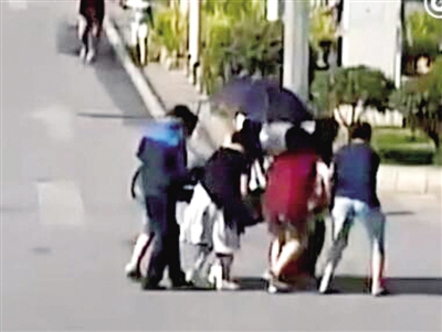 騎電動(dòng)車(chē)經(jīng)過(guò)的兩名男子見(jiàn)狀,立刻上前將王宏釗攙扶起來(lái),緊接著又有幾位市民趕到。一名穿著紅色上衣的男子將王宏釗扛在肩頭,一位女士給王宏釗打傘遮陽(yáng),眾人一起把王宏釗轉(zhuǎn)移到路邊。聞?dòng)嵹s來(lái)的其他交警在這個(gè)路口補(bǔ)位,繼續(xù)指揮交通。