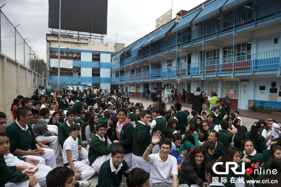 當?shù)貢r間2014年5月8日,墨西哥墨西哥城,學(xué)生聚集在庭院內(nèi)。 圖片來源:Rebecca Blackwell/東方IC