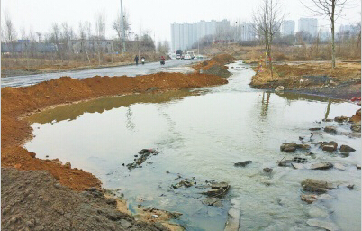 市民王先生反映,南水北調(diào)大橋南邊的祈福大道上,到處都是積水?,F(xiàn)在水深一米多,長度有近百米,連公交車都不能通過?!白蛱煜掠?,積水更深,啥車都過不去。我們?cè)谶@里幫助推滅火的車,不知推了多少輛?!?/font>