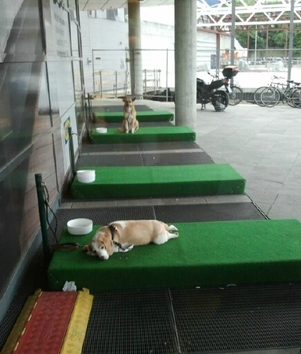 國外新增了貼心的“停狗位”服務(wù),特別設(shè)置一個安全專區(qū),用人工草皮鋪成,還提供飲水,讓主人可以將狗狗暫時放在這邊,就不用委屈它們待在悶熱的車上等了?。。?chuàng)意太贊。。。