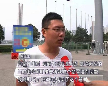 鄭州市民閻先生花了10500元在珠寶展銷會(huì)上買了一塊號(hào)稱A貨的翡翠,然而,鑒定結(jié)果卻顯示他買的其實(shí)是劣質(zhì)的B貨,也就是強(qiáng)酸腐蝕后人工加工的翡翠。目前,該展位賣家不見蹤影,主辦方也稱自己無(wú)責(zé)任。