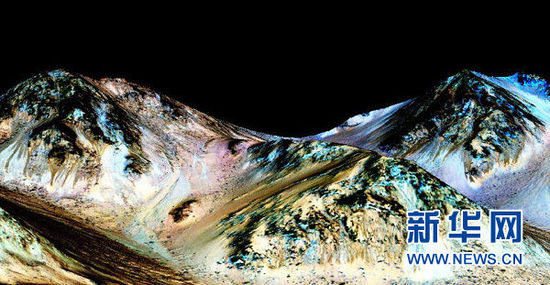 9月28日,在美國首都華盛頓,這張由美國航天局和亞利桑那大學(xué)聯(lián)合發(fā)布的圖片顯示,火星山丘上的“季節(jié)性斜坡紋線”是火星表面有液態(tài)水的有力證據(jù)。美國航天局28日宣布,在火星表面發(fā)現(xiàn)了有液態(tài)水活動(dòng)的“強(qiáng)有力”證據(jù)。