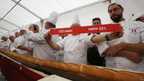 據(jù)悉,這個法式長棍面包是由60名面包師,辛苦工作將近7個小時完成的。