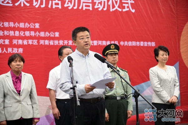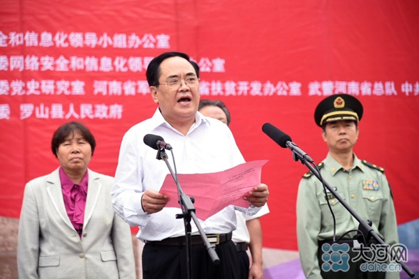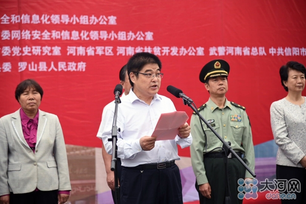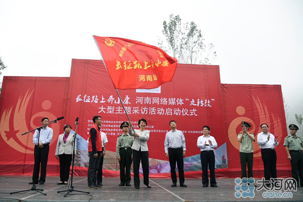 大河網(wǎng)訊(河南日?qǐng)?bào)記者 胡巨成 大河網(wǎng)記者 宋向樂(lè) 范昭 通訊員劉宏冰)9月26日,按照中央網(wǎng)信辦統(tǒng)一部署,“長(zhǎng)征路上奔小康”河南網(wǎng)絡(luò)媒體“走轉(zhuǎn)改”主題采訪活動(dòng)在紅25軍長(zhǎng)征出發(fā)地——羅山縣何家沖啟動(dòng)。省委常委、宣傳部長(zhǎng)趙素萍出席啟動(dòng)儀式為采訪團(tuán)授旗,并勉勵(lì)大家多走多看,發(fā)揚(yáng)長(zhǎng)征精神,講好長(zhǎng)征故事,將精彩報(bào)道奉獻(xiàn)給廣大網(wǎng)友。中央網(wǎng)信辦網(wǎng)絡(luò)新聞信息傳播局副局長(zhǎng)劉沖出席啟動(dòng)儀式并講話,省委宣傳部副部長(zhǎng)、省委網(wǎng)信辦主任何彧致辭,省軍區(qū)副政委兼政治部主任冷志義等出席啟動(dòng)儀式。