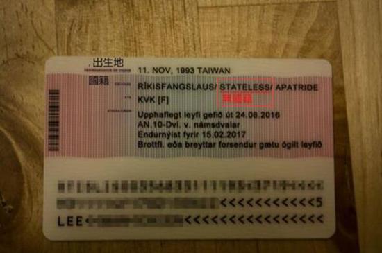 原標題:臺灣女生不滿冰島居留證被列中國籍 結(jié)果被改為“無國籍”