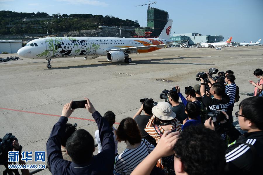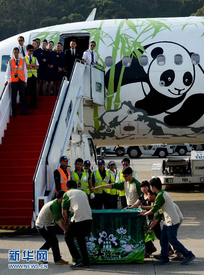 4月30日,大熊貓抵達(dá)澳門機(jī)場(chǎng)。當(dāng)日16時(shí)許,中央政府贈(zèng)送澳門的新一對(duì)大熊貓運(yùn)抵澳門,澳門特區(qū)政府行政法務(wù)司司長(zhǎng)陳海帆等官員及部分少年兒童在機(jī)場(chǎng)迎接。大熊貓經(jīng)檢疫人員檢查后在運(yùn)輸籠中向前來接機(jī)的人們短暫亮相。目前它們身體狀況良好,隨后將前往金像農(nóng)場(chǎng)進(jìn)行30天隔離檢疫。新華社記者張金加攝