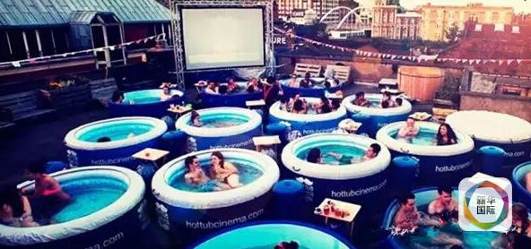 夏天的英國人還是非常會玩兒的。在樓頂一邊在按摩浴缸里泡澡一邊看電影簡直太爽了!只是沒有人在好好看電影,大家都被各種香檳吸引,把酒言歡中……
