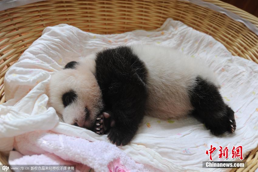 2015年8月21日,四川雅安,中國(guó)保護(hù)大熊貓研究中心基地內(nèi),今年新生大熊貓寶寶首次亮相。2015年出生的在進(jìn)行人工育幼的有十只大熊貓寶寶,它們中最大的剛滿兩月,最小的不足一周。 圖片來(lái)源:CFP視覺(jué)中國(guó)