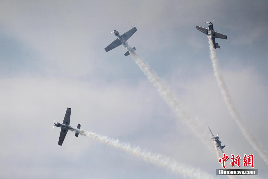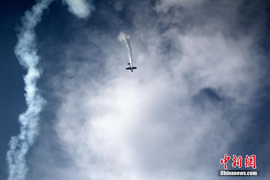 9月24日,河南鄭州上街機場,參加2015鄭州航展的特技飛行員們,穿云破霧在加緊練習表演動作,沖刺9月25日開幕的鄭州航展。中新社記者 王中舉 攝