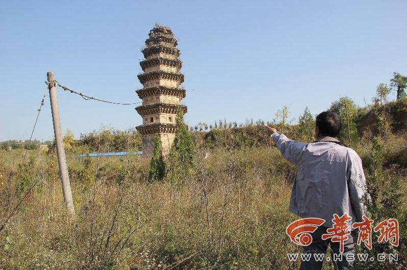 12日,住在離塔不遠(yuǎn)處的村民趙先生告訴華商報(bào)記者,在他的印象中,這座塔發(fā)生傾斜已經(jīng)有20多年了,大約在2005年前后。銅川新區(qū)管委會(huì)的工作人員在塔身上系上了一根鋼索,目的是為防止塔身繼續(xù)傾斜。“趕緊把這塔保護(hù)一下,再不保護(hù)這塔可能就沒(méi)有了?!壁w先生說(shuō),除了傾斜、風(fēng)蝕,導(dǎo)致塔體破壞外,偶爾還有盜墓賊光顧,他們?cè)谒車蛄撕脦讉€(gè)盜洞,這也加速了塔的破壞。