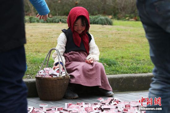 1月12日,上海外灘街頭出現(xiàn)一位小女孩,她身穿古典長(zhǎng)裙,頭裹赭紅色圍巾,挎著裝滿火柴的小竹籃,在寒風(fēng)中向過(guò)往的路人送小火柴。據(jù)了解,這是一次“愛(ài)心衣櫥”幫助中國(guó)山區(qū)孩子擺脫寒冷的愛(ài)心募捐活動(dòng)。在寒冷的冬天,他們嘗試以“賣(mài)火柴的小女孩”活動(dòng),喚起社會(huì)的關(guān)注,把更多的溫暖傳遞到中國(guó)山區(qū)寒冷孩子的手上。只要掃一掃火柴盒上的二維碼,就可以立刻向山區(qū)孩子送上一套溫暖新衣。張亨偉 攝
