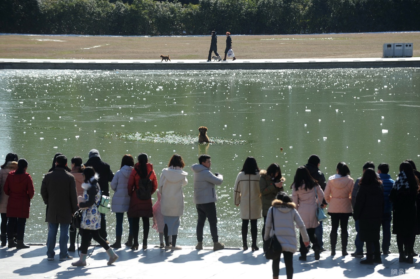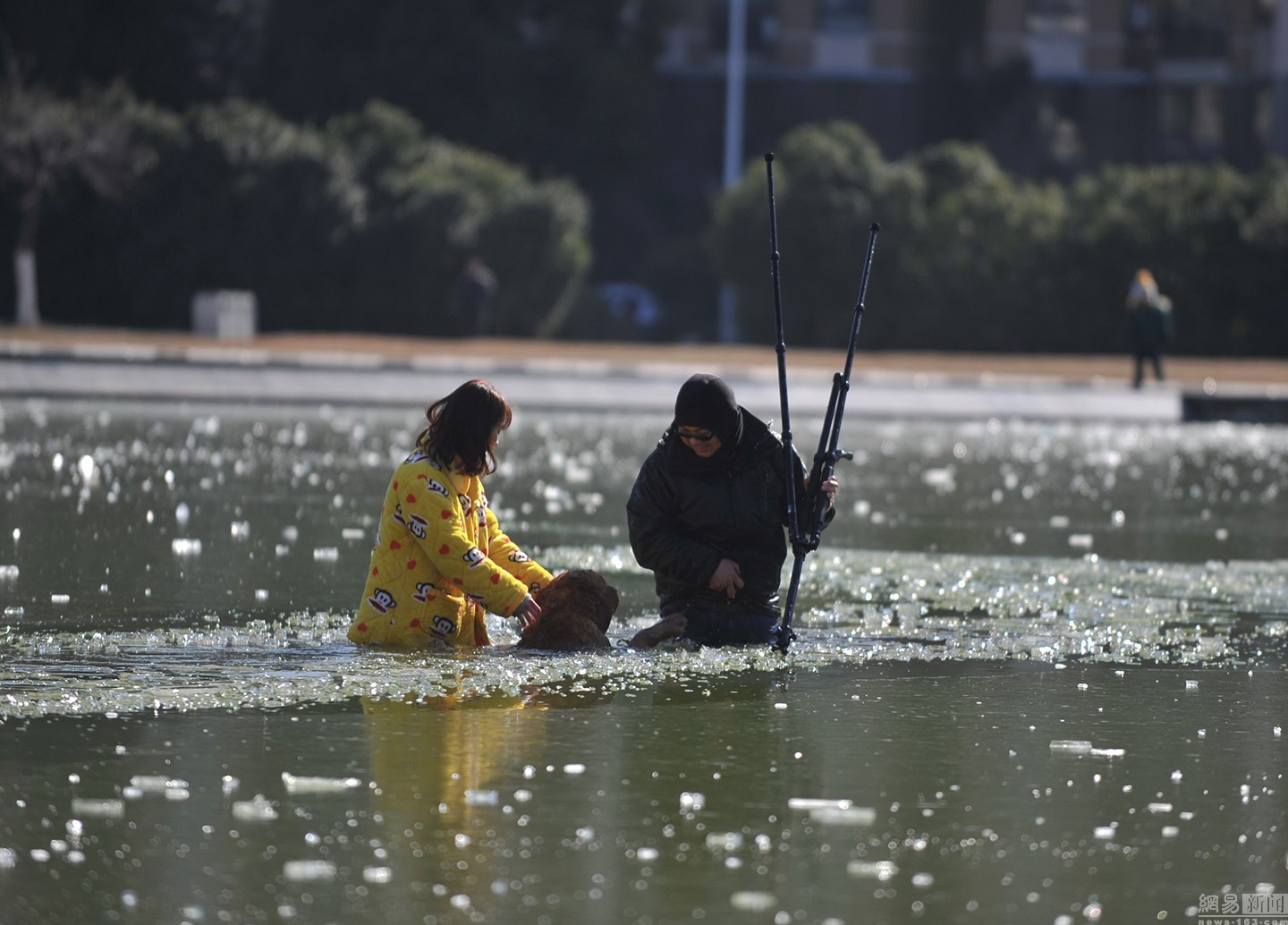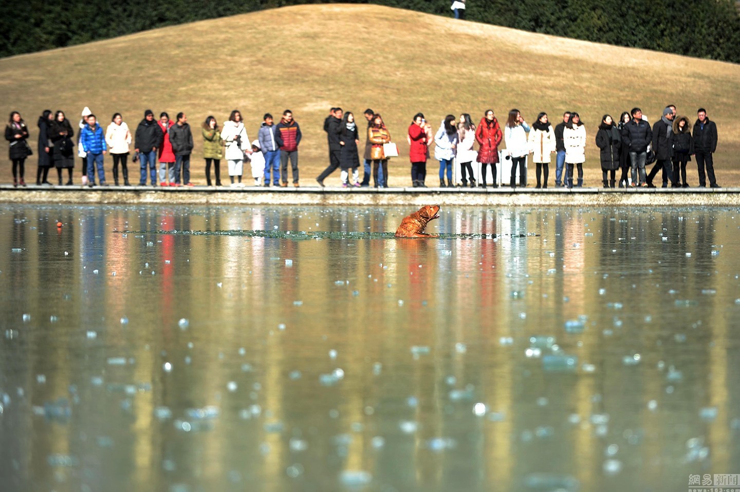 2016年1月25日中午12時30分許,安徽合肥市民項先生正好在賴少其藝術館附近辦事,突然他發(fā)現(xiàn)一只大金毛被卡在藝術館門口的冰面中,一直在掙扎。