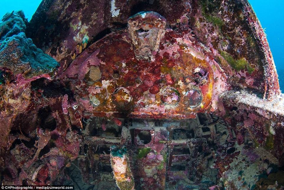 據(jù)《每日郵報》報道:二戰(zhàn)期間激戰(zhàn)被擊落的戰(zhàn)斗機近日在所羅門群島被發(fā)現(xiàn),在海底浸泡多年的戰(zhàn)斗機已經(jīng)銹跡斑斑長滿了海底植物。