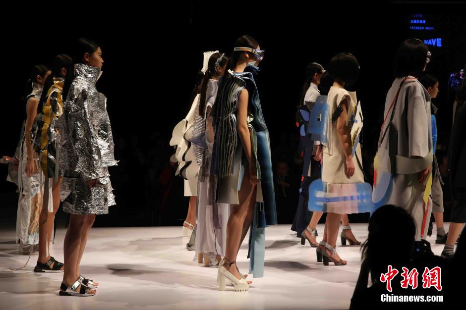 北服時裝周各專業(yè)方向的畢業(yè)秀都有全新設(shè)計,首次按“時尚創(chuàng)意”和“時尚成衣”分組進(jìn)行專場發(fā)布的女裝設(shè)計方向是本屆一大亮點。 中新社記者 任海霞 攝