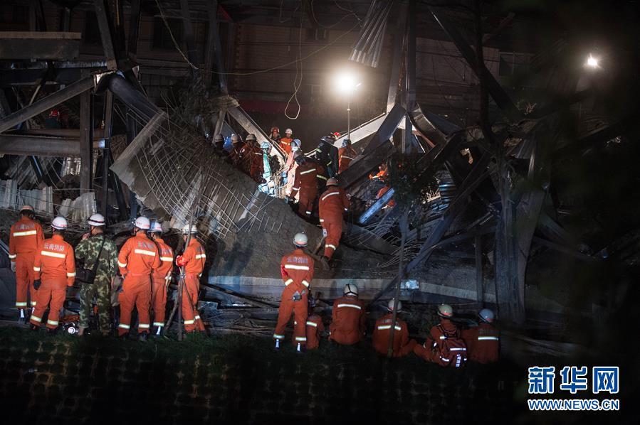 3月16日下午17時多,昆明市官渡區(qū)普自村東風日產(chǎn)4S店旁一在建工地發(fā)生坍塌事故。21時許,現(xiàn)場有關(guān)負責人向昆明市領(lǐng)導匯報情況時說,發(fā)生事故的建筑物是當?shù)鼐用裥〗M集體建設(shè)的一個客堂,沒有請具備資質(zhì)的設(shè)計單位和施工單位,而是自行請了施工隊施工,當日下午在澆筑水泥時發(fā)生坍塌。