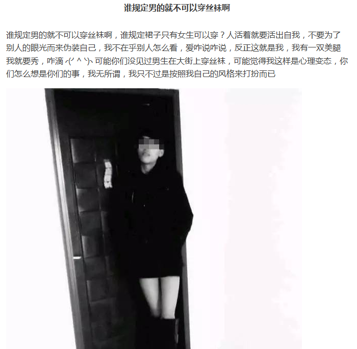 好吧,小編還是第一次見到這位網(wǎng)紅,難免心情有些小激動(dòng)。畢竟每個(gè)人都有一顆愛美的心和追求美的權(quán)利。只是這位小伙很“勇敢”的表達(dá)出了自己內(nèi)最深處的想法和最真實(shí)真是的自我。對(duì)此,小編只想說:請(qǐng)收下我的膝蓋!實(shí)在是佩服佩服!最后,也祝愿這位小伙早日找到能夠陪伴自己相愛一生的伴侶。