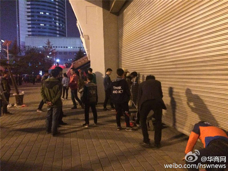 圖為沒(méi)買(mǎi)到票的球迷躺地上透過(guò)門(mén)縫觀看比賽。