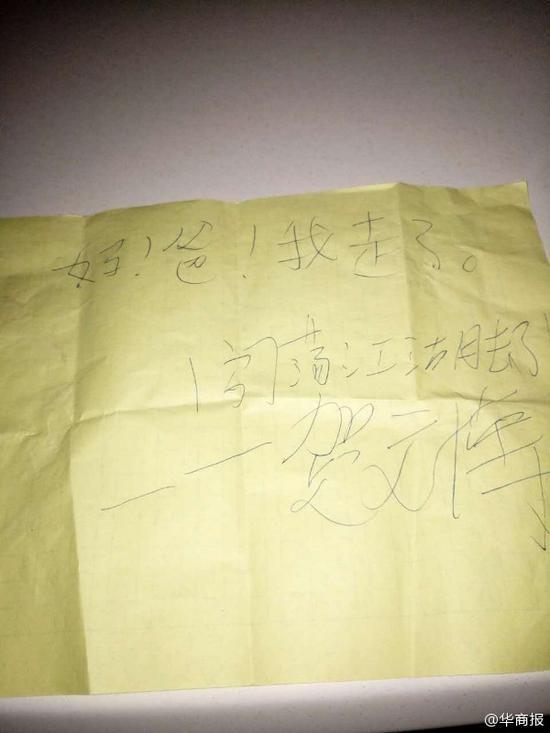 據(jù)賀先生介紹,他是清澗人,在榆林草海則附近打工,5月24日15時(shí)左右,賀先生的妻子回到在草海則租房中看到,家里有被翻動(dòng)的痕跡,剛在家中衣服口袋里的1000元錢不見了,桌子上放了一張紙條,上面是兒子賀文博的字跡:“爸!媽!我走了,闖蕩江湖去了――賀文博”。