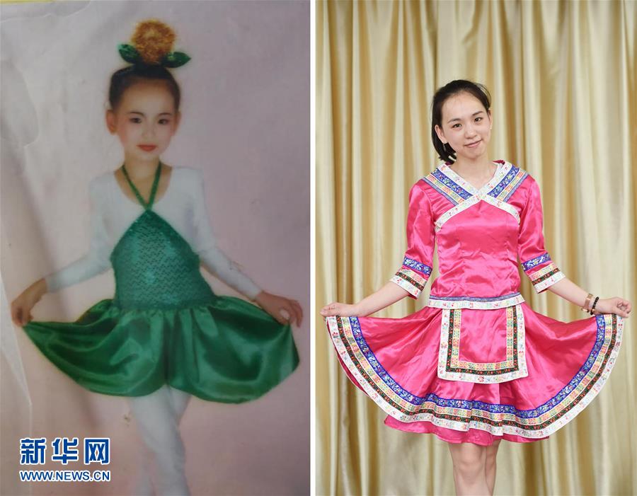 左圖:姜春曉童年時(shí)表演節(jié)目(資料照片);右圖:5月27日,福建福州市聾啞學(xué)?!?0后”音樂老師姜春曉在為學(xué)校“六一”節(jié)目做準(zhǔn)備(新華社記者 宋為偉 攝)。新華社發(fā)