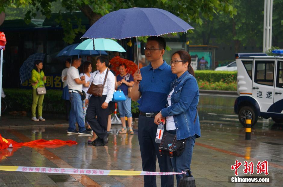6月7日下午,河南鄭州遭暴雨襲城,2016年全國(guó)統(tǒng)一高考進(jìn)入了第二場(chǎng)考試。在鄭州市第四十七中學(xué)考點(diǎn)外,眾多陪考家長(zhǎng)撐著各色雨傘,在雨中靜心等待孩子走出考場(chǎng)。當(dāng)日,河南省氣象臺(tái)發(fā)布預(yù)報(bào),7日下午到夜間,全省多云間陰天,大部分地區(qū)有陣雨、雷陣雨,并伴有雷暴大風(fēng)、短時(shí)強(qiáng)降水、局地冰雹等強(qiáng)對(duì)流天氣。 周小云 攝
